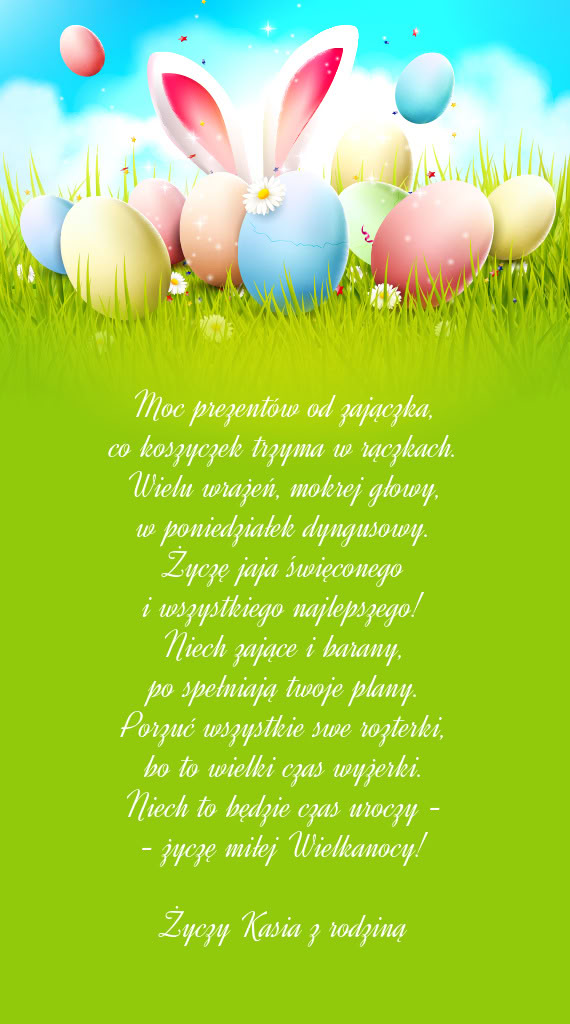 bogaty zajączek uśmiechem czaruje.