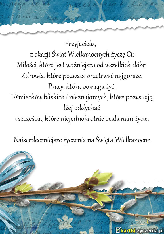 Przyjacielu, z okazji Świąt Wielkanocnych życzę Ci: - Gotowa kartka na wielkanoc