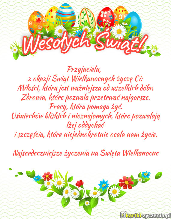Przyjacielu, z okazji Świąt Wielkanocnych życzę Ci: - Gotowa kartka na wielkanoc