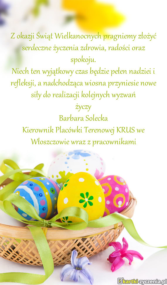 Z okazji Świąt Wielkanocnych pragniemy złożyć