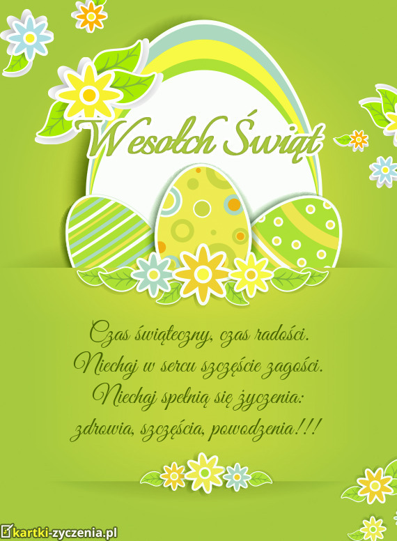 Słońca, szczęścia, pomyślności, w pierwszy dzień świąt dużo gości, w drugi dzień świąt - Gotowa kartka na wielkanoc