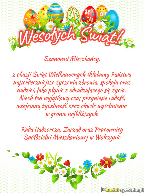 z okazji Świąt Wielkanocnych życzę Wam przede wszystkim spokoju, radości i chwili wytchnienia od codziennych obowiązków. Niech ten wiosenny czas przyniesie dużo dobrej energii, nadziei oraz inspiracji – zarówno w życiu osobistym, jak i zawodowym.