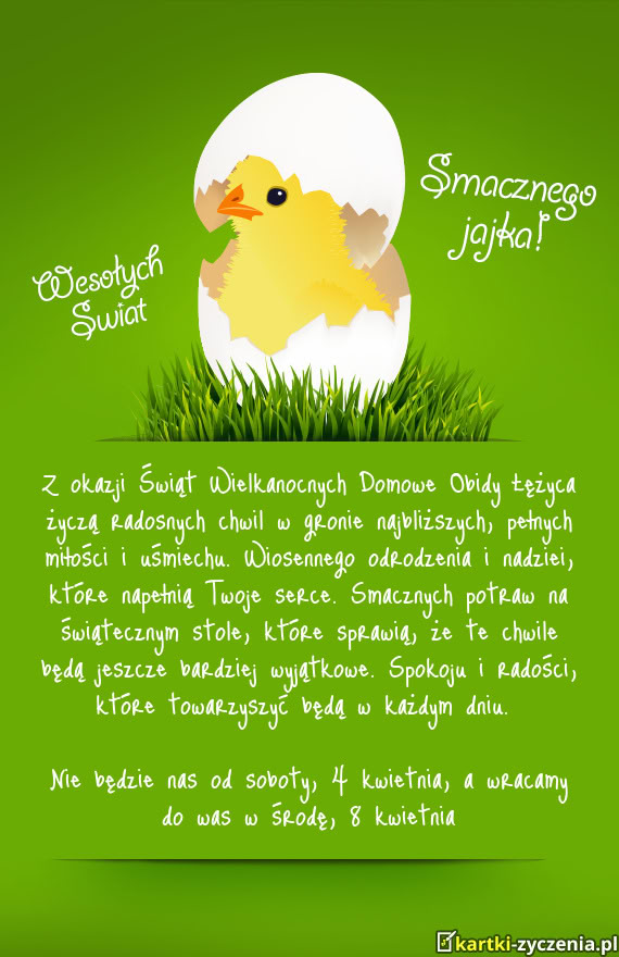 Niech Zmartwychwstanie Pańskie przyniesie wiarę i nadzieję na lepsze jutro, a czas spędzony w gronie najbliższych upłynie w atmosferze miłości i wzajemnego szacunku.