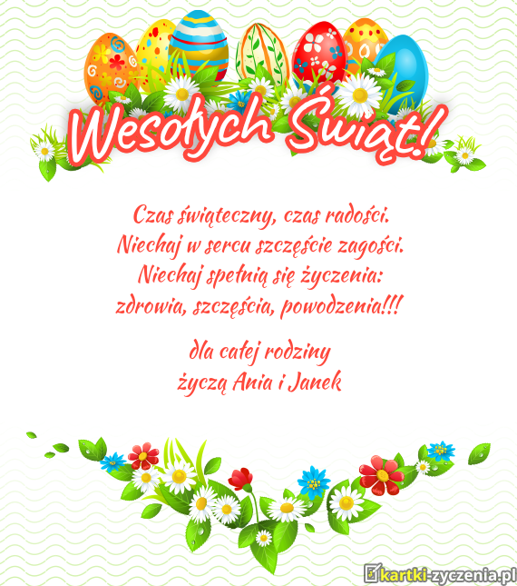 Ŭyczą Ania i Janek - Gotowa kartka na wielkanoc