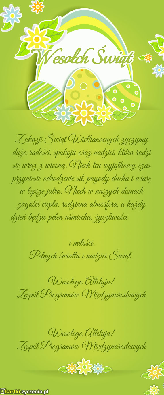 Wesołego Alleluja! Zespół Programów Międzynarodowych - Gotowa kartka na wielkanoc