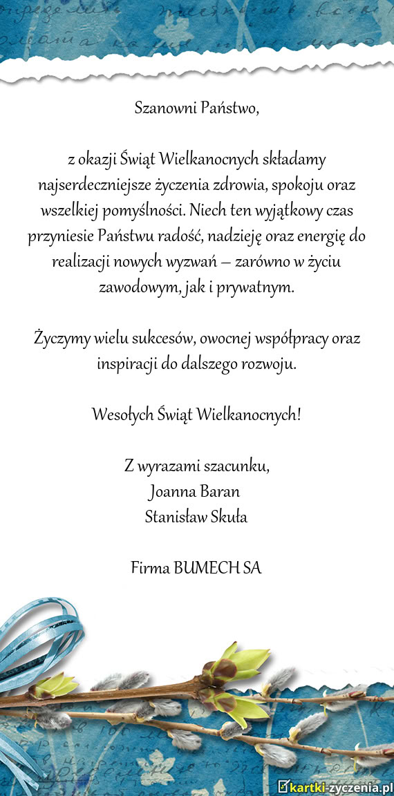 Radosnych świąt Zmartwychwstania Pańskiego oraz Błogosławieństwa Bożego.