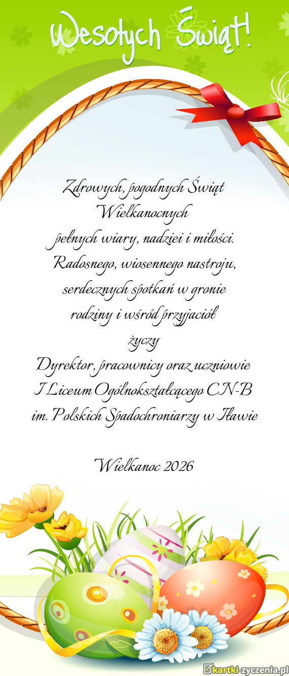 Wielkanoc to czas odradzającego się życia, a także nadziei na lepsze jutro, więc życzę Wam oraz pozostałym członkom Waszego Klanu dobrego zdrowia, miłego spędzenia tego wiosennego czasu w spokoju i radosnym nastroju oraz powodzenia