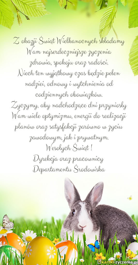 Z okazji zbliżających się Świąt Wielkanocnych,