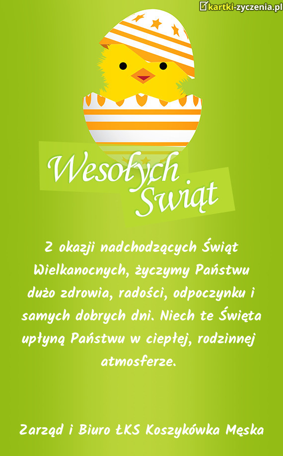 Z okazji nadchodzących Świąt Wielkanocnych, życzymy Państwu dużo zdrowia, radości, odpoczynku - Gotowa kartka na wielkanoc
