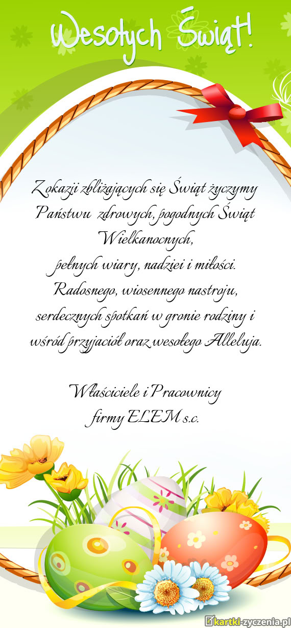 Z okazji Świąt Wielkanocnych pragniemy złożyć najserdeczniejsze życzenia, aby ś - Gotowa kartka na wielkanoc