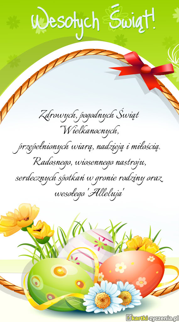 Z okazji Świąt Wielkanocnych, składamy najserdeczniejsze życzenia: dużo zdrowia, radości, wios - Gotowa kartka na wielkanoc