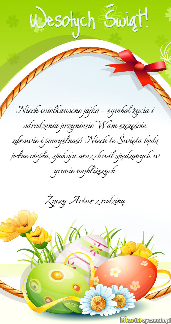 Z okazji Świąt Wielkanocnych składamy Państwu najserdeczniejsze życzenia: dużo zdrowia, spokoj - Gotowa kartka na wielkanoc
