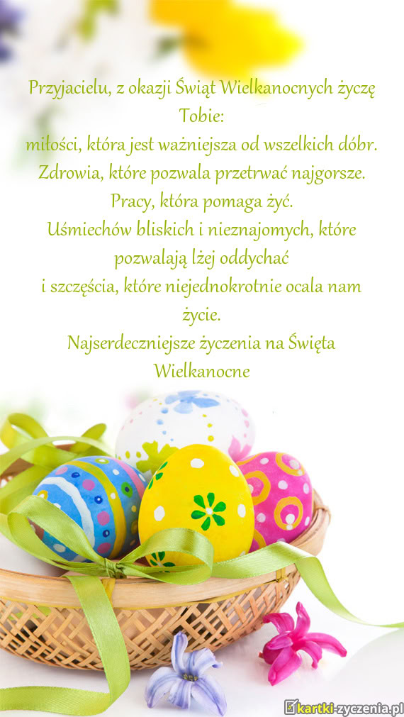 Przyjacielu, z okazji Świąt Wielkanocnych życzę Tobie:
