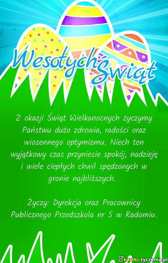 Z okazji Świąt Wielkanocnych życzymy Państwu dużo zdrowia, radości oraz wiosennego optymizmu - Gotowa kartka na wielkanoc