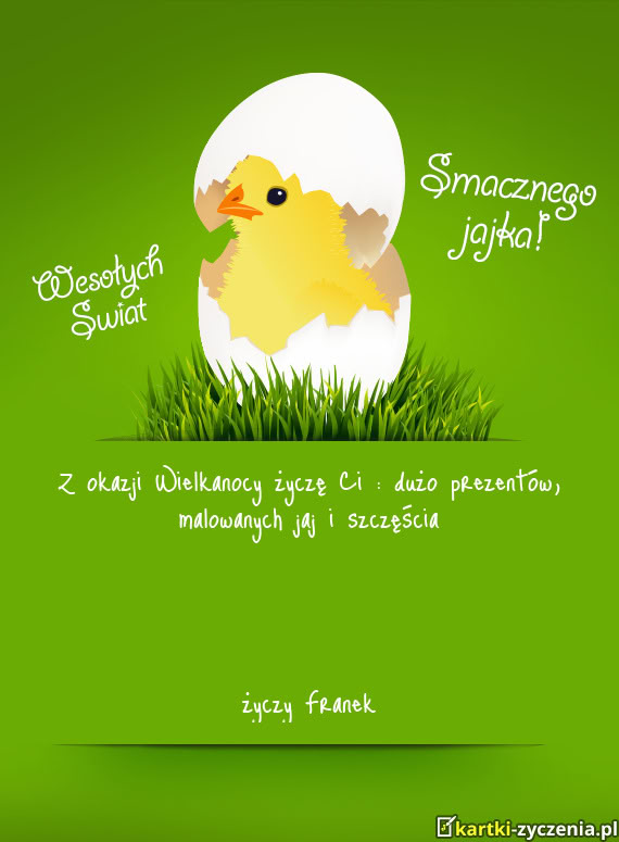 Z okazji Wielkanocy życzę Ci: dużo prezentów i jajek czekoladowych