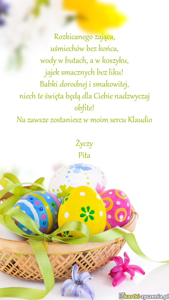 Zdrowych pogodnych i spokojnych Swiat Wielkiej Nocy i Blogoslawienstwa Bozego na kazdy dzien dla Zosi, Andrzeja ,i Pauliny z Rodzina, zycza Agnieszka Emil i Damian . Serdecznie Was kochani pozdrawiamy i calujemy