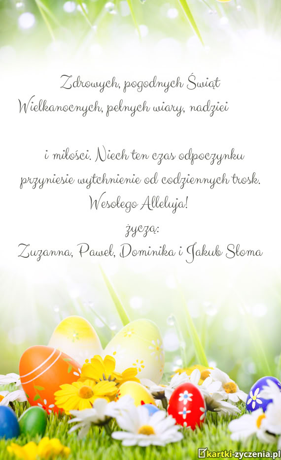 Zdrowych, pogodnych Świąt Wielkanocnych, pełnych wiary, nadziei i miłości. Niech ten czas odpoc - Gotowa kartka na wielkanoc