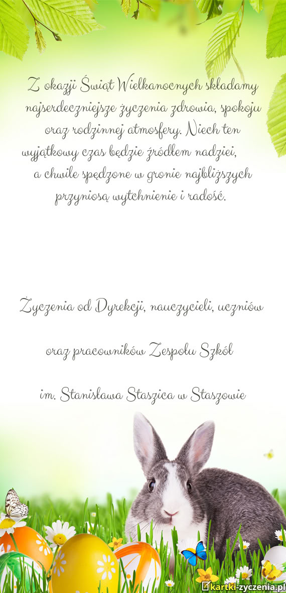 Życzenia od Dyrekcji, nauczycieli, uczniów oraz pracowników Zespołu Szkół im - Gotowa kartka na wielkanoc