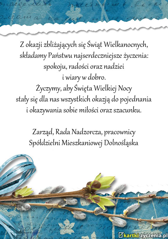 Życzy: Kierownik GOPS w Kijewie Królewskim Iwona Dzielska wraz z Pracownikami - Gotowa kartka na wielkanoc