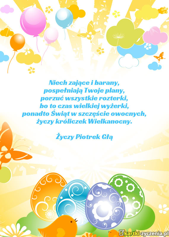 Życzy Piotrek Głą - Gotowa kartka na wielkanoc