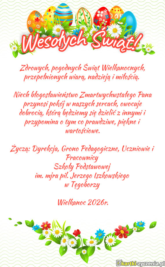 Życzy: Samorządu Uczniowski wraz z opiekunami - Gotowa kartka na wielkanoc
