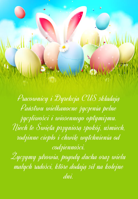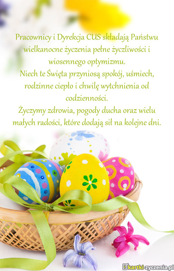 Pracownicy i Dyrekcja CUS składają Państwu wielkanocne życzenia pełne życzliwości i wiosenneg