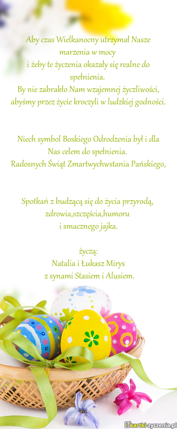 Niech ta Wielkanoc w serce Twe wleje światło i miłość i nowe nadzieje