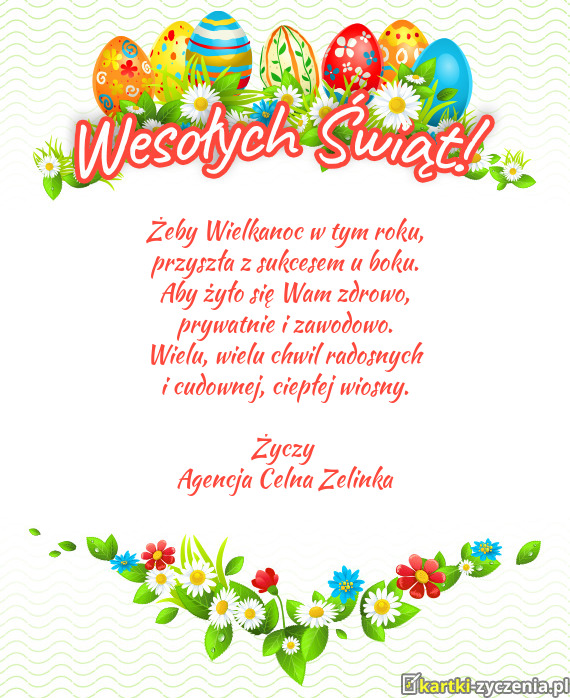Z okazji Świąt Wielkanocnych składamy wszystkim klientom najlepsze życzenia