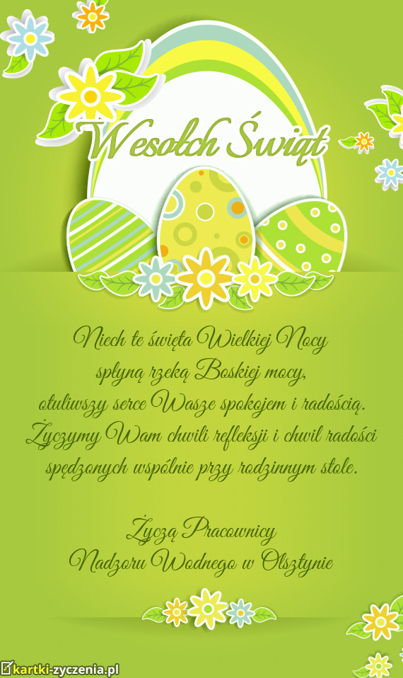 Zdrowych, pogodnych Świąt Wielkanocnych, pełnych wiary,nadziei i miłości. Radosnego, wiosennego