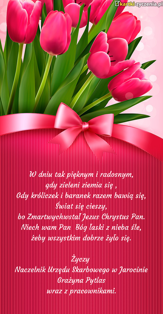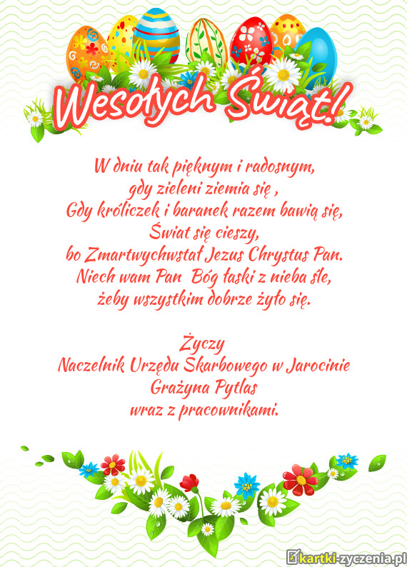 ūyczy Naczelnik Urzędu Skarbowego w Jarocinie Grażyna Pytlas wraz z pracownikami