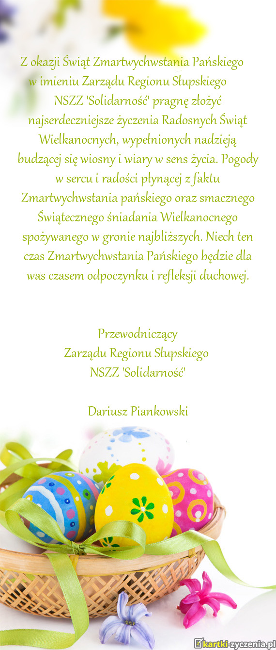 Chcielibyśmy złożyć Państwu szczere życzenia pokoju, wiary i miłości