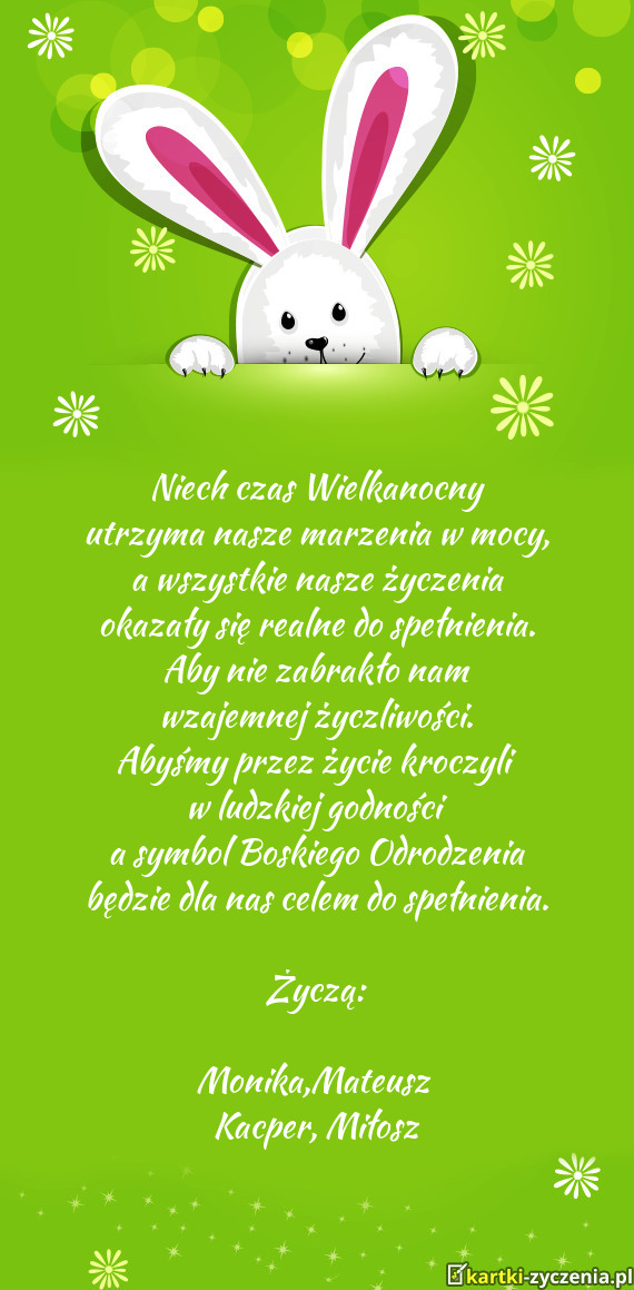 Abyśmy przez życie kroczyli w ludzkiej godności a symbol Boskiego Odrodzenia będzie dla nas
