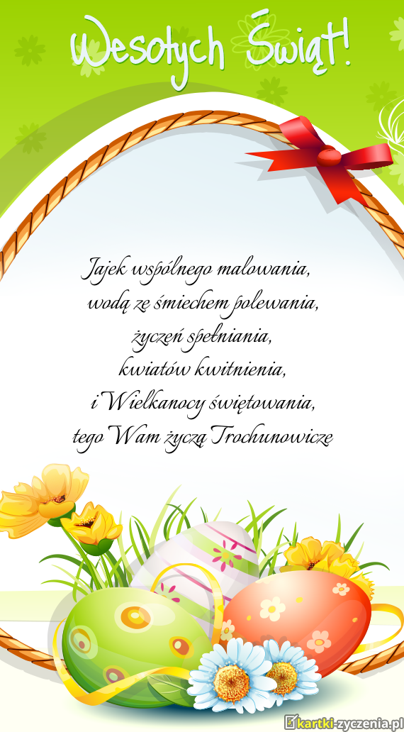 Pisanek w koszyku, dobrego humoru bez liku, Dyngusa mokrego i jajeczka pysznego, bazi tak jak śnieg
