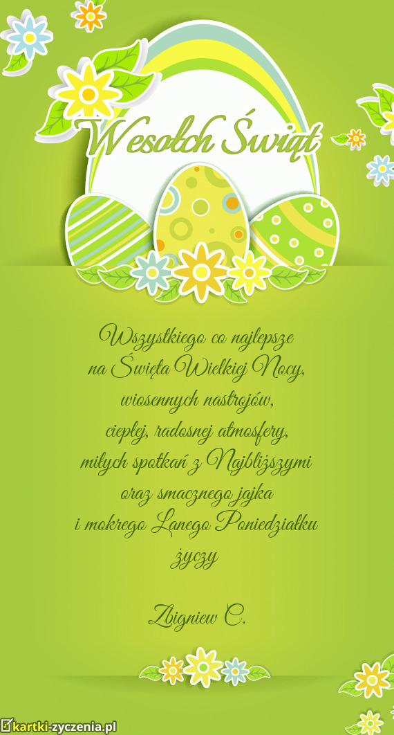 Zdrowych, pogodnych Świąt Wielkanocnych,