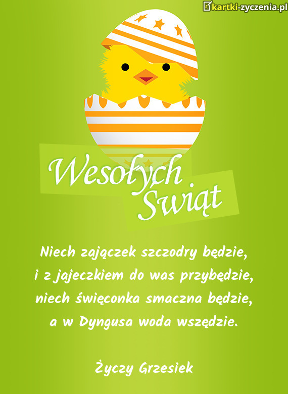 Zdrowych, radosnych Swiat Wielkiej Nocy pelnych nadziei i milosci. Smacznego jajka oraz mokrego dyng